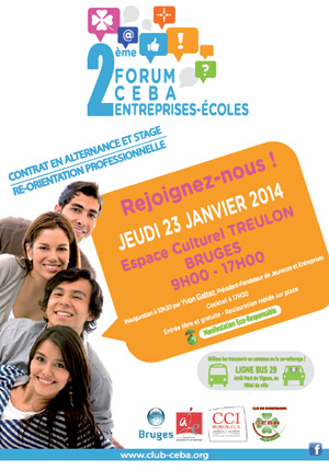 Le 2ème Forum Ecole-Entreprise se tiendra à Bruges, à l'espace culturel Treulon, le jeudi 23 janvier 2014.