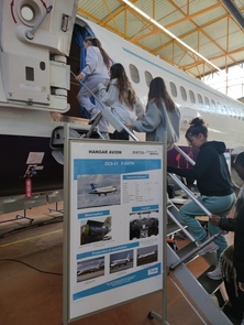 Puis nos filles ont tourné sur des ateliers en lien avec les formations proposées au sein de l'institut : contrôle non destructeur, simulateur de vol, maintenance des appareils, avec une visite du hangar et des divers avions ou hélicoptères sur lesquels les étudiants d'Evering travaillent.