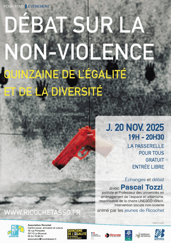 - Une conférence ce jeudi avec Pascal Tozzi, professeur des universités et directeur de la CHAIRE UNESCO sur la non violence, à 19h.