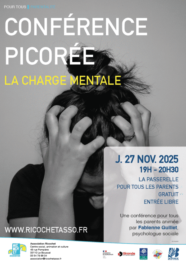 - Une conférence le jeudi 27 novembre sur la charge mentale avec Fabienne Guillet, psychologue sociale, à 19h également.