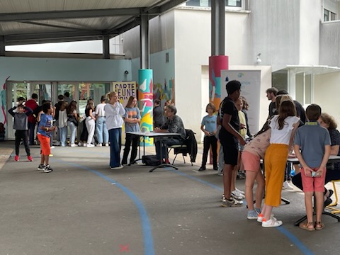 À cette occasion , 2 classes de sixième du collège Ausone ont été invitées à suivre l’évènement et à participer à des ateliers dans le village olympique.
