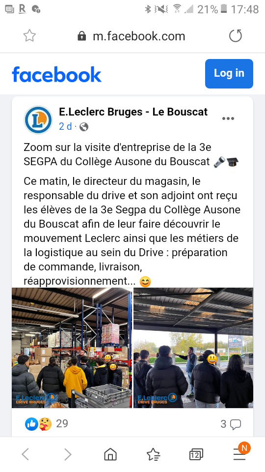 Ce mercredi 7 novembre, les élèves de la 3e Segpa se sont rendus au magasin Leclerc de Bruges, afin de découvrir les métiers de la logistique au sein du Drive.